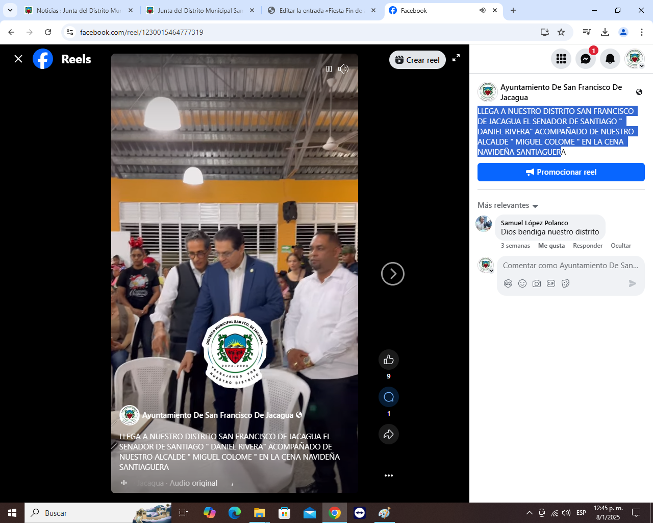 LLEGA A NUESTRO DISTRITO SAN FRANCISCO DE JACAGUA EL SENADOR DE SANTIAGO » DANIEL RIVERA» ACOMPAÑADO DE NUESTRO ALCALDE » MIGUEL COLOMÉ » EN LA CENA NAVIDEÑA SANTIAGUERA