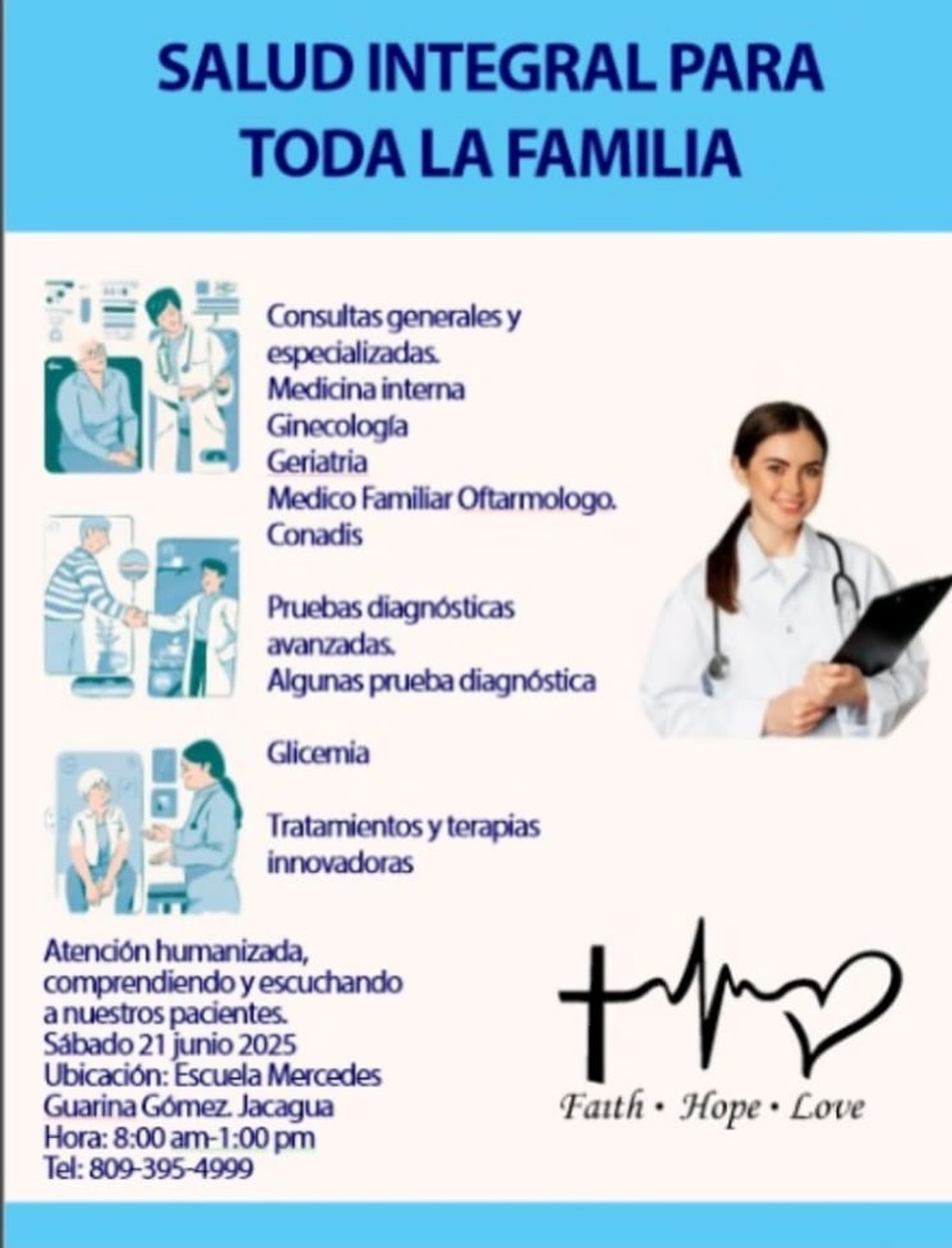 Gran operativo de salud integral para toda la familia este sábado 21 de junio en el centro educativo Mercedes Guarina Gomez a partir de las 8 am. hasta las 1 pm.