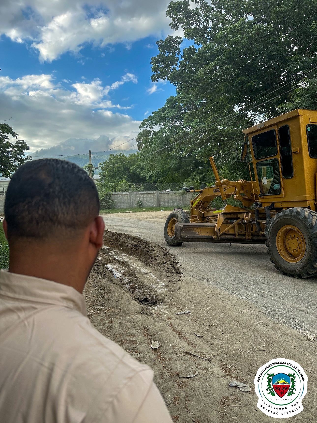 El Alcalde Miguel Colomé interviene calle principal de la comunidad » LA DELGADA » debido a el deterioro y a la necesidad de los munícipes para un mejor tránsito. Con un greda para canalizar la reparación de la misma .