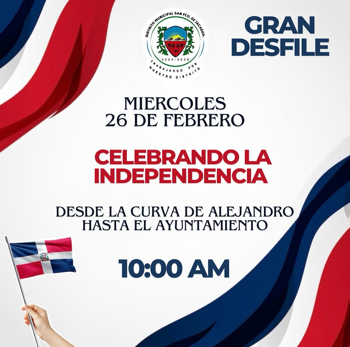 febrero 22, 2025 GRAN DESFILE PATRIÓTICO PARA CELEBRAR EN NUESTRO DISTRITO POR TODO LO ALTO. La independencia de la República Dominicana APARTIR DE LAS 10 AM Comparte y Comenta