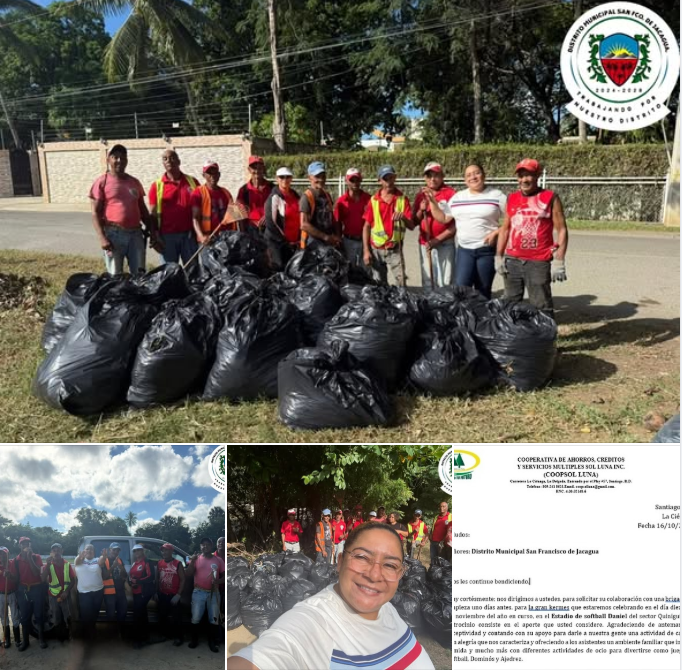 El Ayuntamiento de San Francisco de Jacagua agradece a la Cooperativa Sol Luna por invitarnos a colaborar con la brigada de ornato en los trabajos de limpieza y mantenimiento del Play Daniel, ubicado en la comunidad de Quiniguita, con motivo de la gran kermés que estarán realizando.