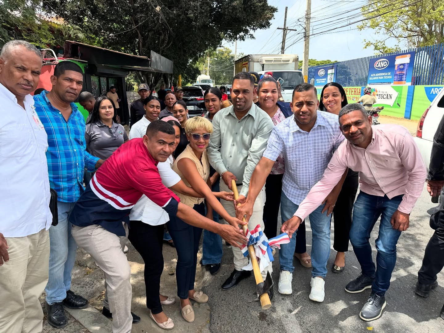 Gran picazo de aceras y contenes en la avenida principal de las tres cruces de jacagua, con objetivo de mejorar el Tránsito peatonal de los munícipes.